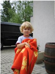 "Hallo, Ich möchte euch erzählen, was so war, wie da Papa und die Mama geheiratet haben. Ich muss mich aber jetzt noch waschen, umziehen und fertig machen."